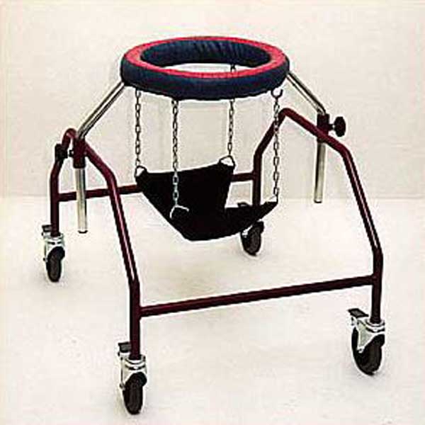 Ходунки для детей до 8 лет, страдающих заболеваниями, при которых они сохраняют равновесие, но лишены возможности самостоятельно ходить. При помощи ходунков поддерживается равновесие ребенка. Устав, он может присесть на тканевое сидение, высота которого регулируется при помощи цепочки. На ходунках ребенок может передвигаться в любом направлении. Колесики вращаются вокруг вертикальной оси и оснащены стояночными тормозами.