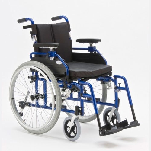 Кресло-коляска предназначена для передвижения больных и инвалидов с частичной утратой функций опорно-двигательного аппарата по любым покрытиям. Передвижение возможно как самостоятельно с помощью ручного привода, так и с помощью сопровождающего. Рама изготовлена из облегченного сплава, имеет эмалевое лакокрасочное покрытие, складывается по ширине, складывается и раскладывается без инструмента. Конструкция рамы предусматривает возможность изменения позиции заднего колеса для лиц, которые передвигаются без протезов для ног. Сиденье регулируется по ширине, имеет съемную подушку, выполнено из ткани с водоотталкивающей пропиткой. Спинка складная, регулируется по ширине, имеет съемную накладку, выполненную из ткани с водоотталкивающей пропиткой.