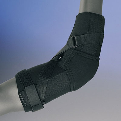 Стабилизирующий налокотник с боковыми шарнирами, шинами и системой перекрещивающихся ремней. Ограничивает движения в суставе, защищает связочный аппарат, облегчает боль, предотвращает переразгибание в локтевом суставе. Изготовлен из эластичного износостойкого материала Thermoprene. Применяется при остеоартрозе локтевого сустава, в период реабилитации после травм и операций, а также при повышенных нагрузках на локтевой сустав, в том числе во время спортивных тренировок.