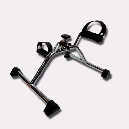Переносной педальный тренажер для разработки нижних конечностей. Изготовлен из стали. Легко складывается и раскладывается. Снабжен пластиковыми педалями с хомутом и регулятором сопротивления, благодаря которому можно увеличивать и уменьшать нагрузку. Тренажер применяется для проведения активных (педали крутит сам пациент) и пассивных тренировок (педали крутит опекун) в период реабилитации после травмы, для профилактики пролежней, контрактур, мышечной атрофии, а также для улучшения кровообращения и повышения тонуса мышц у пациентов, прикованных к инвалидному креслу.
